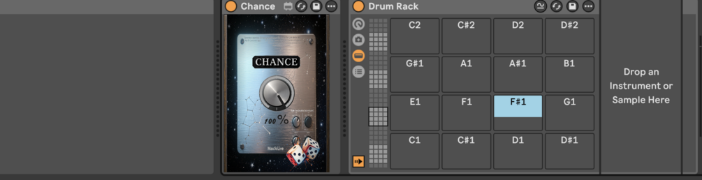 Chance is a Max for Live MIDI device that does one thing well: it sets the probability of your notes passing through, from 0% to 100%. Use it to break up repetitive patterns, add a touch of unpredictability, or create subtle variations that make MIDI parts feel alive.